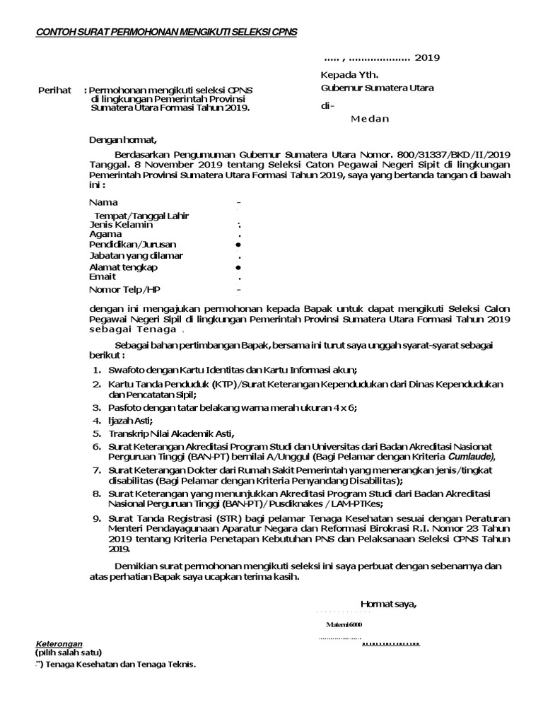Pemerintah akan membuka lowongan kerja cpns 2019 sebanyak membuka 152.286 formasi untuk alokasi di instansi pusat dan daerah seperti yang. .cpns oku timur 2019 ini bernomor 132 tahun 2019 keputusan bupati ogan komering ulu timur 2019 tentang penerimaan calon pegawai negeri sipil untuk sementara saat dibuka web resmi pemerintah ogan komering ulu timur info ini belum di unggah. Daftar formasi cpns sumut 2019 info cpns sumatera utara (sumut) mengenai daftar formasi cpns (calon pegawai negeri sipil) tahun. Bagaimana bentuk format surat lamaran cpns 2019 tulis tangan? Pendaftaran seleksi calon pegawai negeri sipil (cpns) kembali dibuka pada senin (11/11/2019).